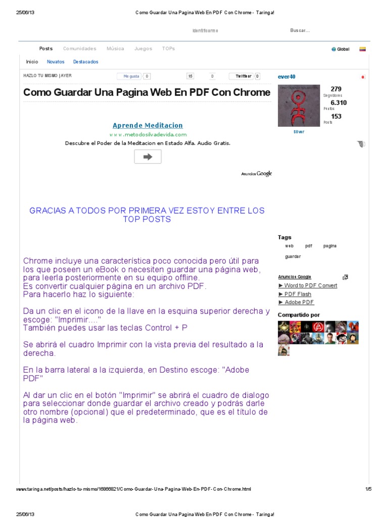 Como Guardar Una Pagina en Formato PDF - Taringa! | PDF | Informática ...