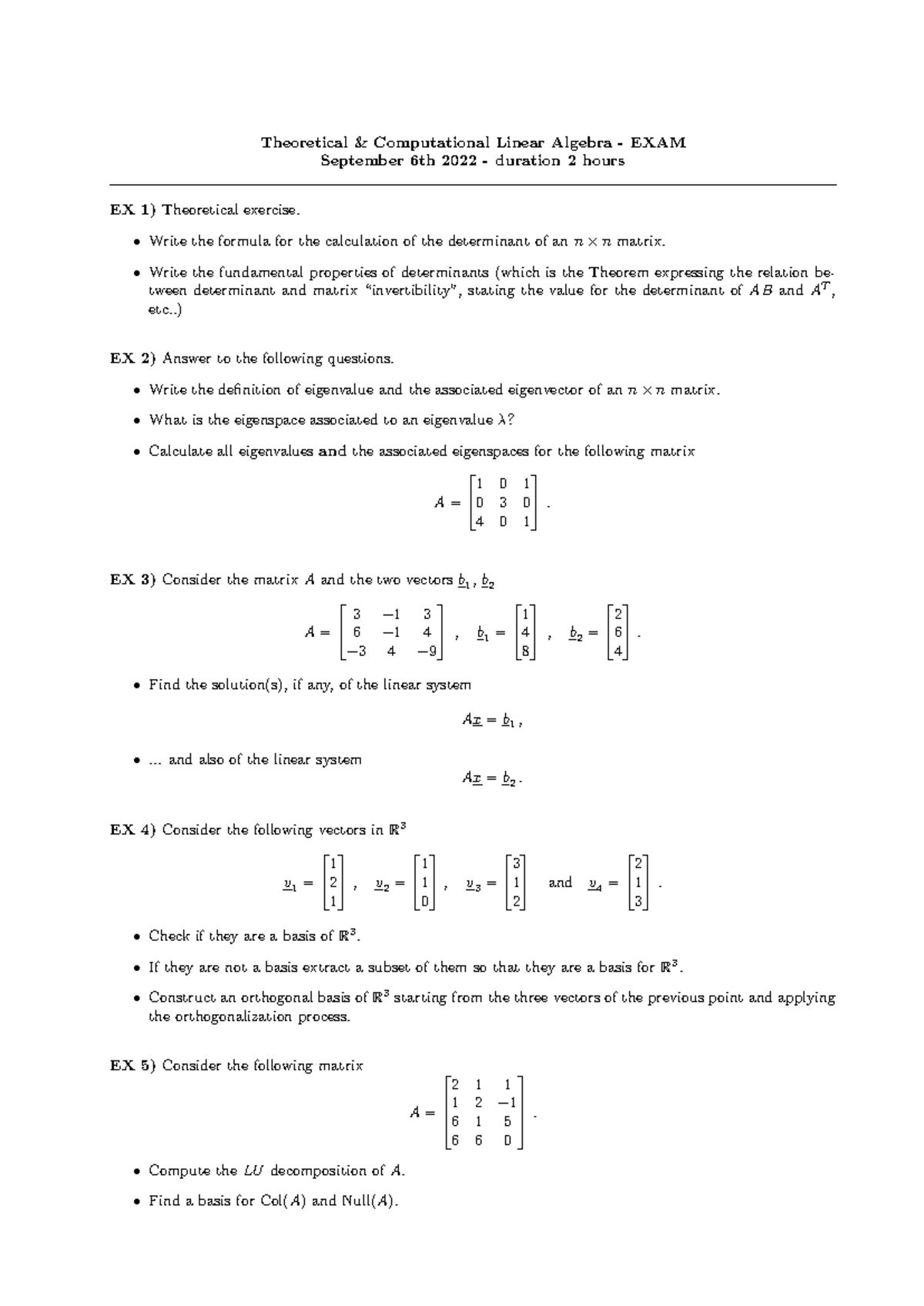 Theoretical Computational Linear Algebra Exam Notes (Course Code: AI 6 ...