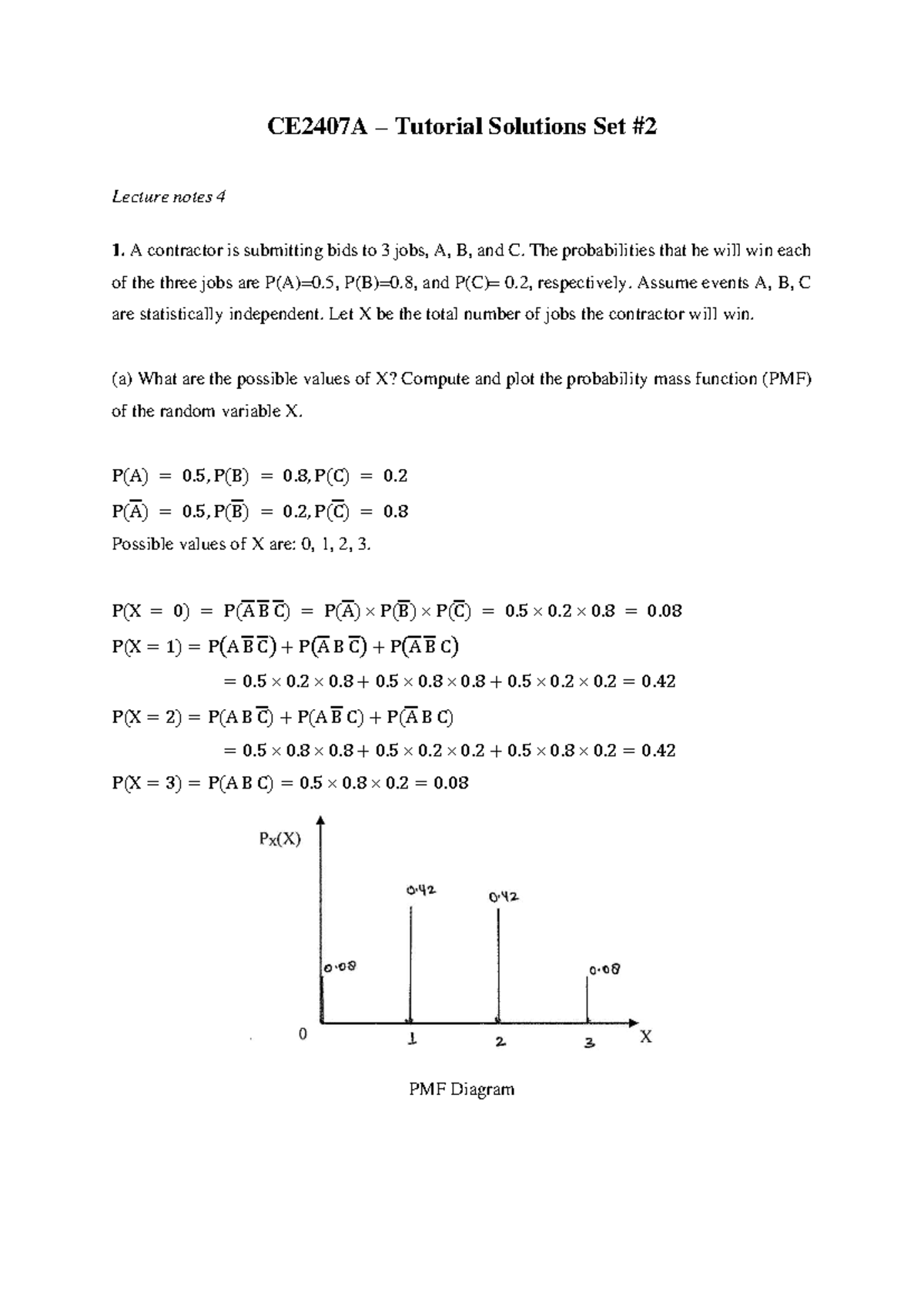 CE2407A Tutorial Solutions Set: Lecture Notes on Probability and ...