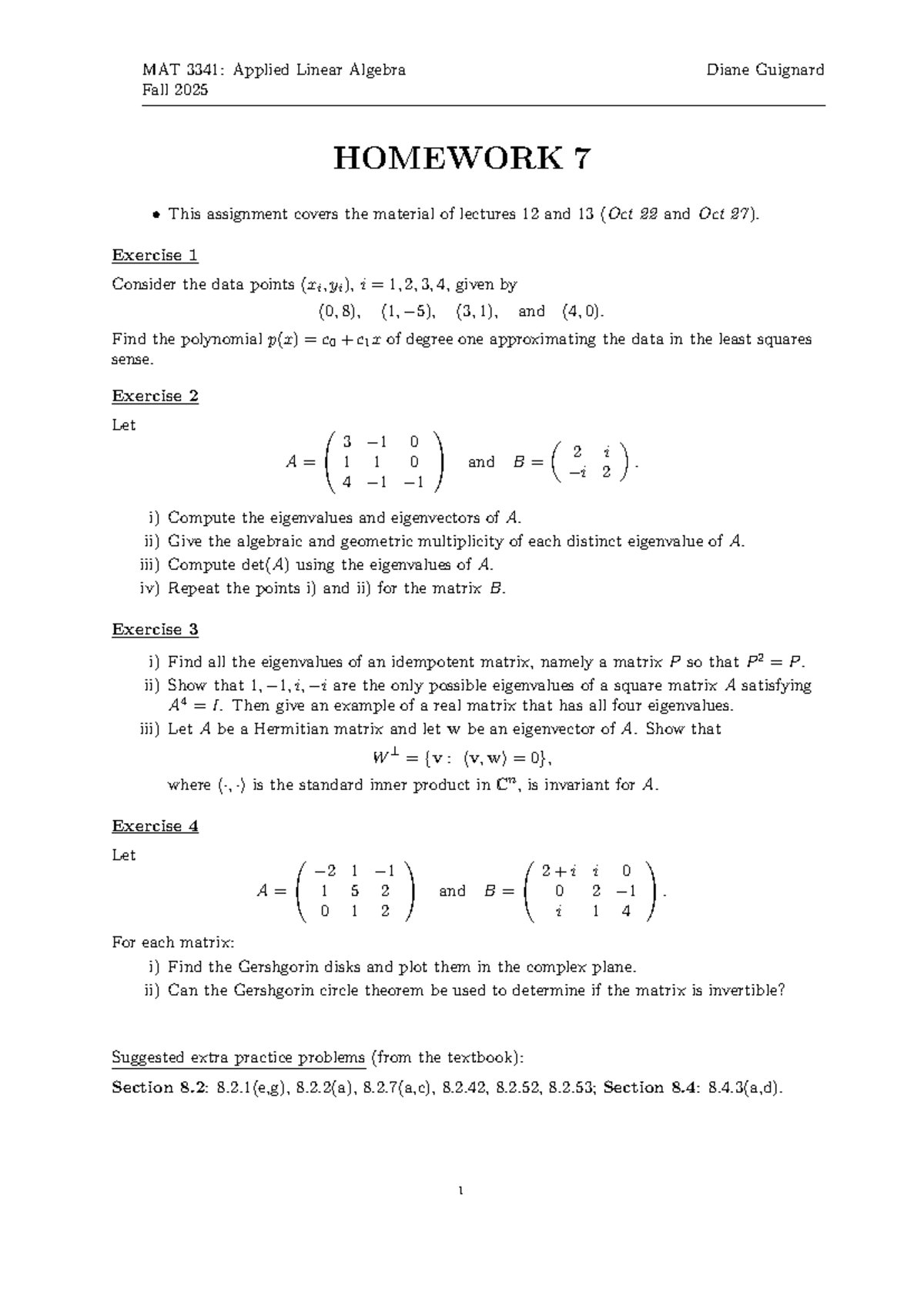 MAT 3341: Applied Linear Algebra Fall 2025 - Homework 7 Solutions - Studocu