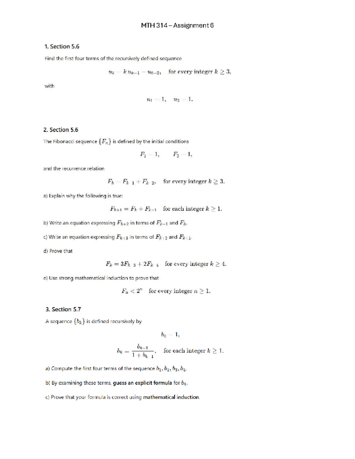 MTH 314 Assignment 6: Recursively Defined Sequences and Induction - Studocu