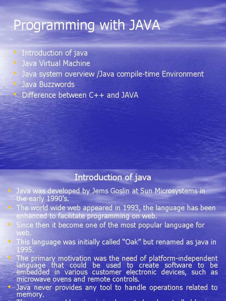 Java Unit 1 - Java Programming unit one - JAVA UNIT-I What is Java ...