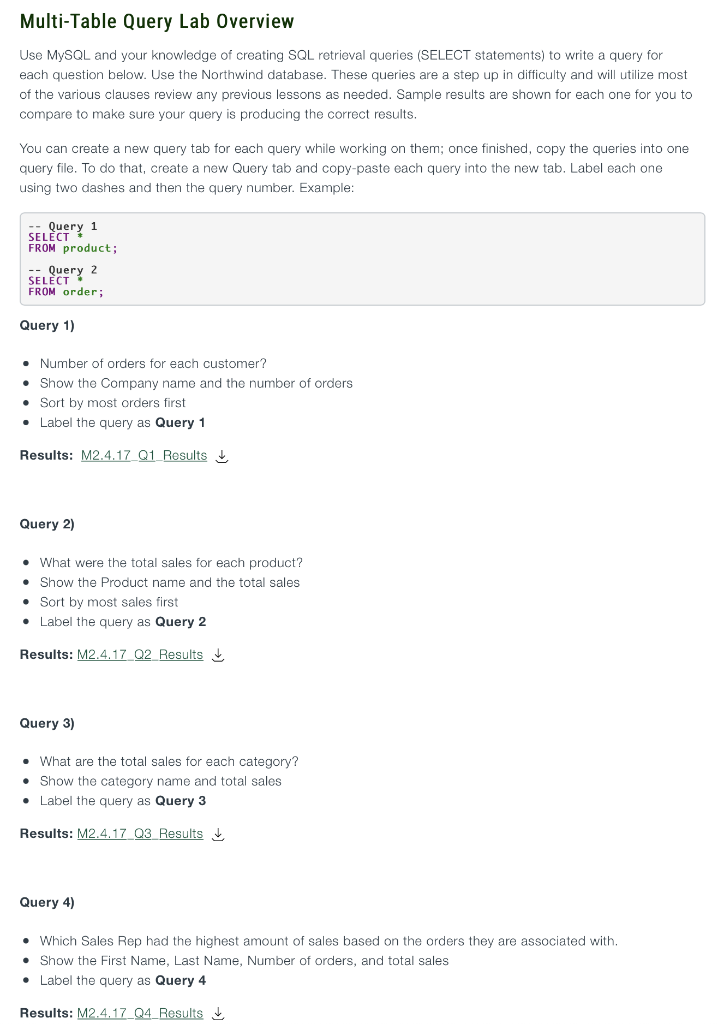 Solved Multi-Table Query Lab Overview Use MySQL and your | Chegg.com