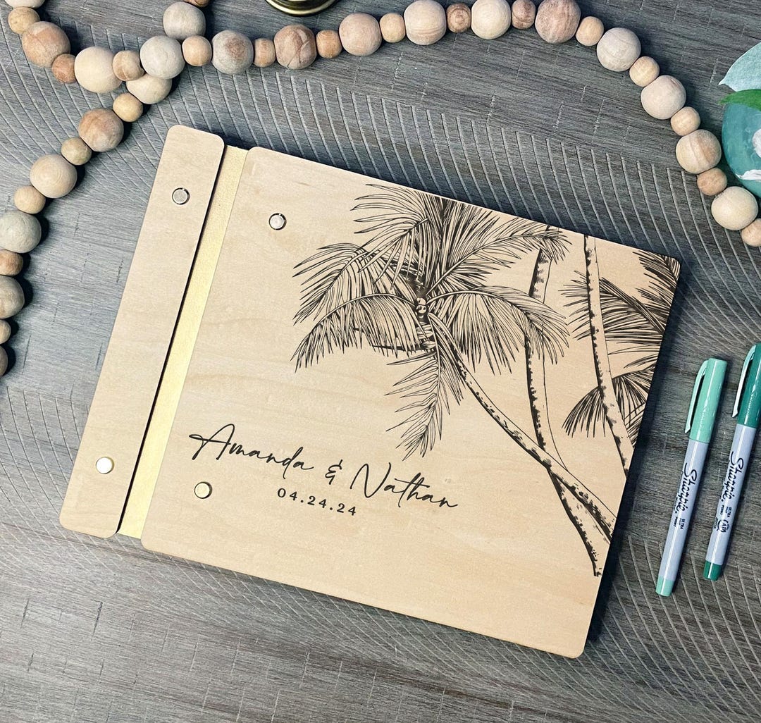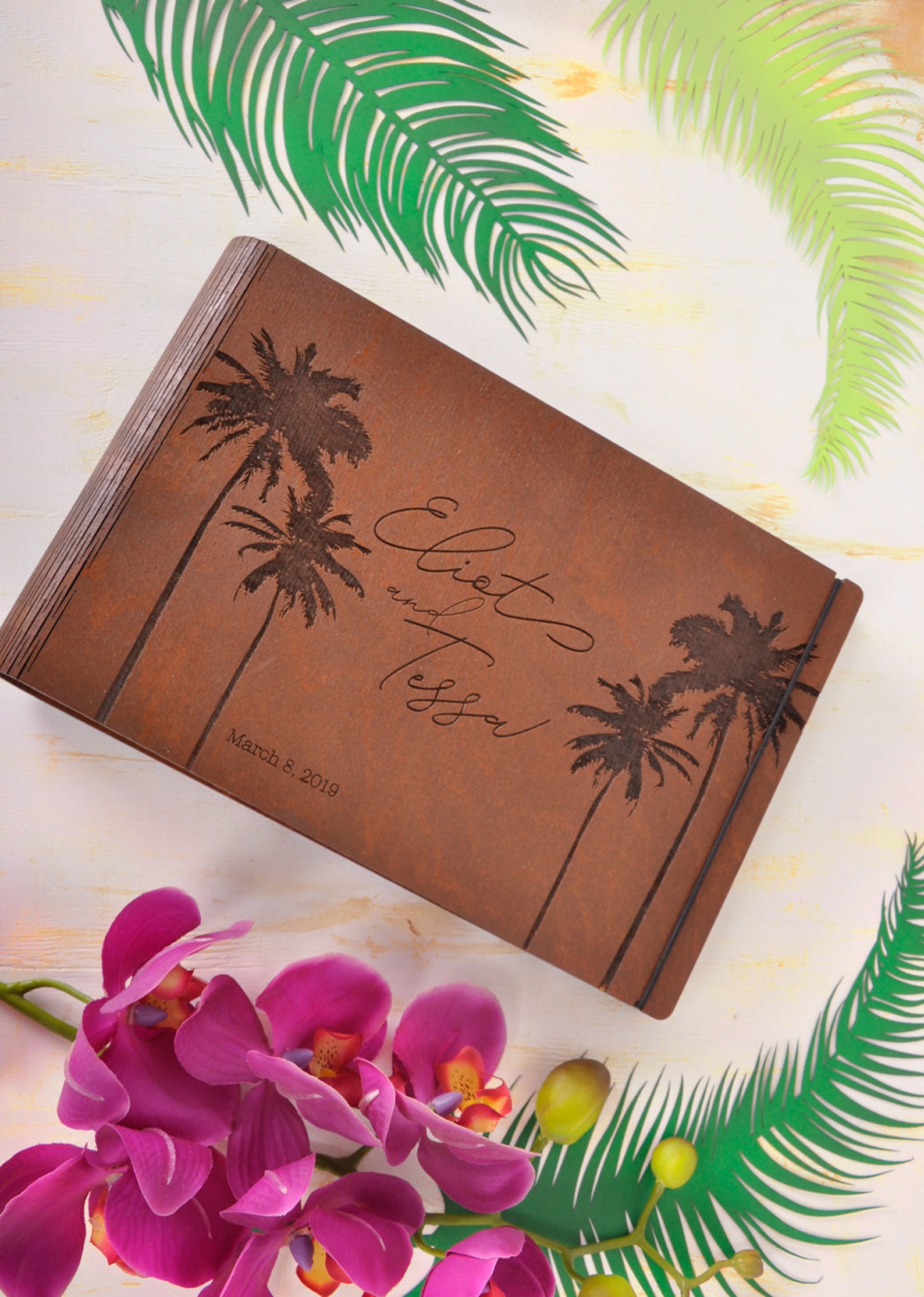 Beach Wedding Guest Book - Custom Tropical Engagement Guestbook - Palm ...