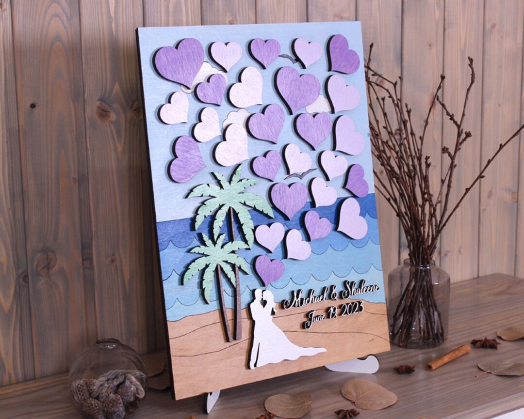 Personalized Beach Wedding Guest Book Alternative Palm Tree With Hearts ...