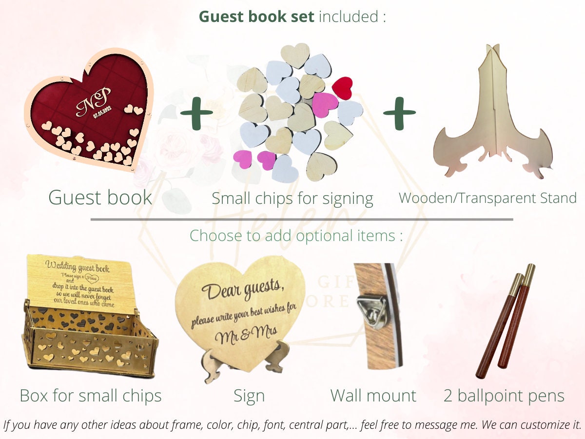 Amazon.com: Kannino Rustic Wedding Guest Book with Wooden Hearts Drop ...