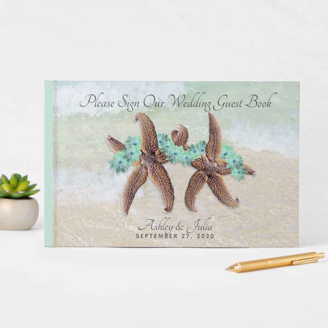 Two Brides Beach Themed Wedding Guest Book | Zazzle