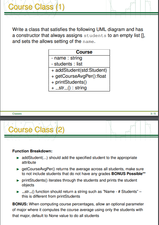 Solved Course Class (1) Write a class that satisfies the | Chegg.com