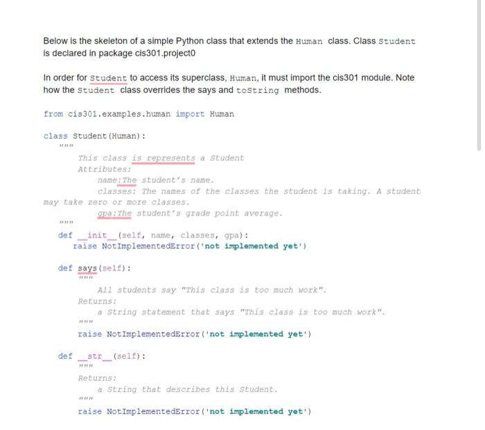 Based on this image's title: “Below is the skeleton of a simple Python class that | Chegg.com”