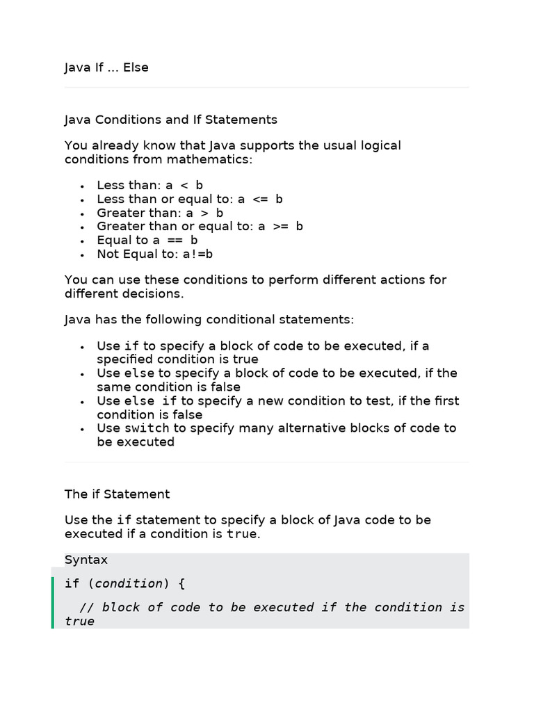 If-Else Statements and Conditional Logic in Java | PDF | Method ...