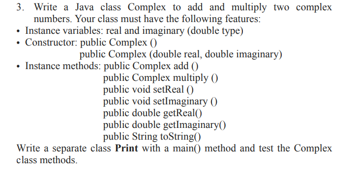 Solved 3. Write a Java class Complex to add and multiply two | Chegg.com