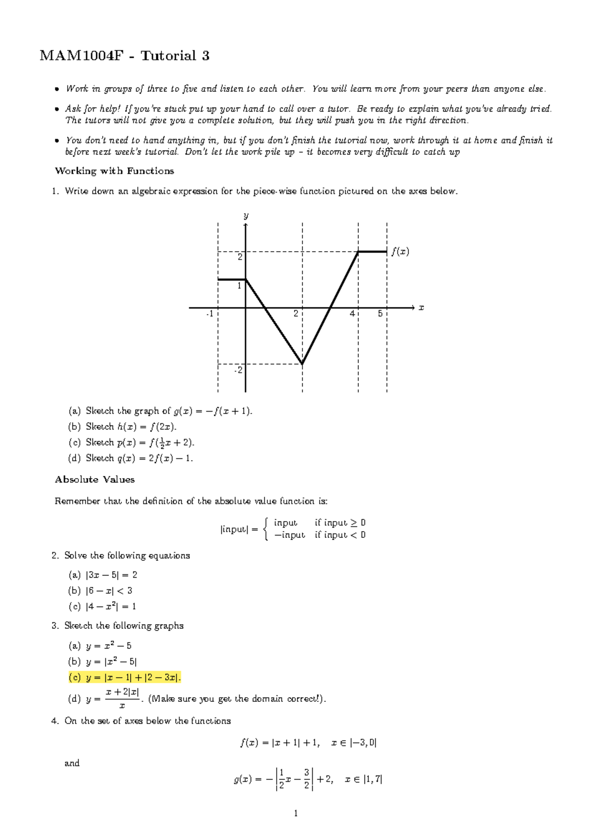 Tutorial 03 - Yes - MAM1004F - Tutorial 3 Work in groups of three to ...