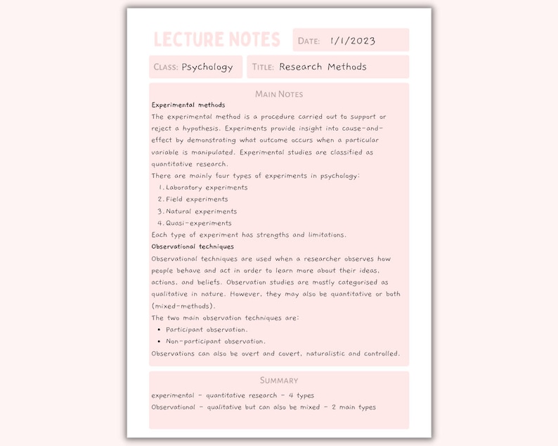 Lecture Notes Template (university / College / School / Study) - Etsy