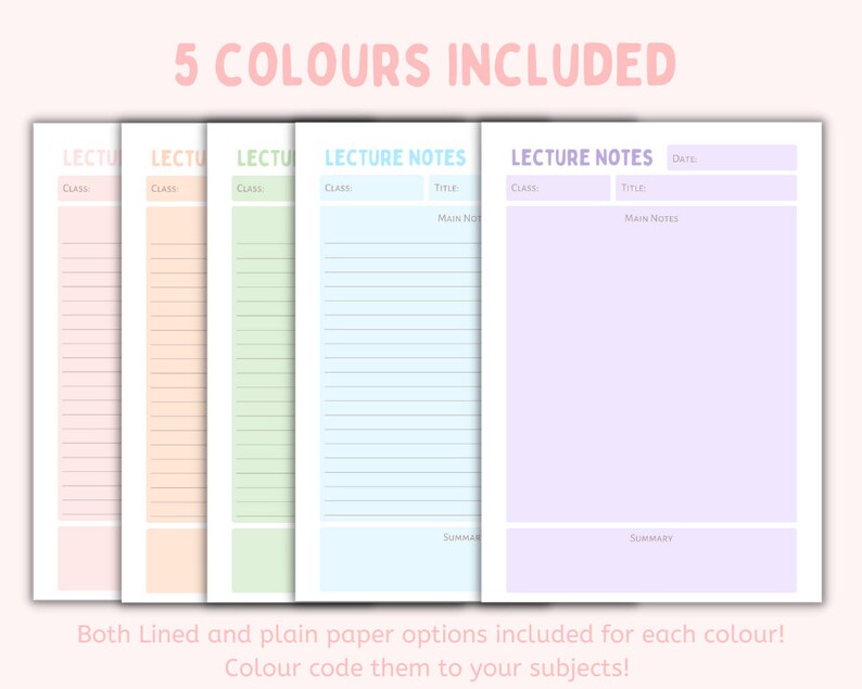 Printable Lecture Notes | Instant Download PDF | 8 Colors Included ...