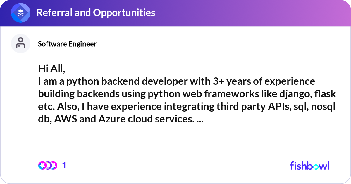 Looking for Referrals – Python Backend Developer (... | Fishbowl