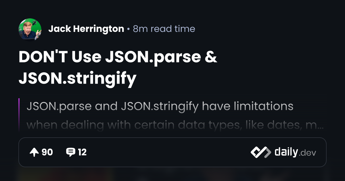 DON'T Use JSON.parse & JSON.stringify | daily.dev