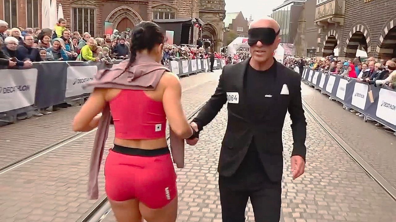 Blindfolded and backwards: Extreme athlete completes marathon challenge