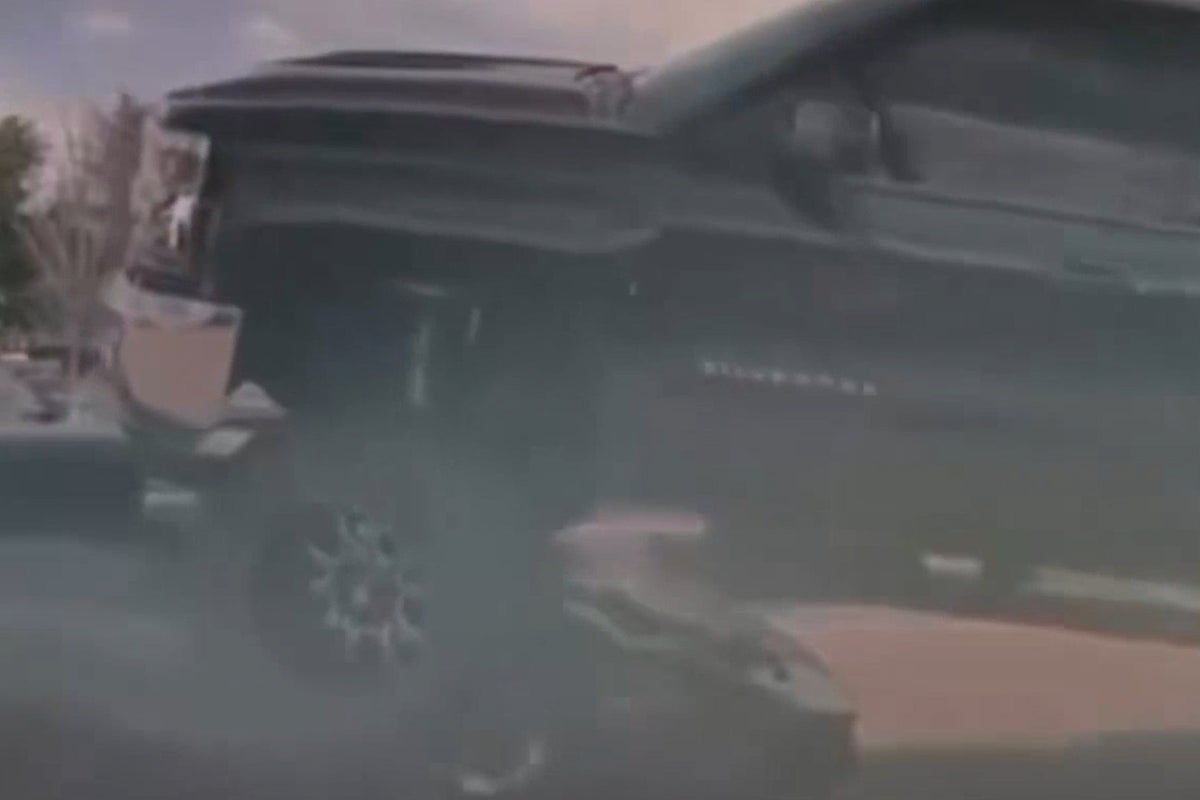 Woman seen on camera running over Lamborghini in her pick-up truck