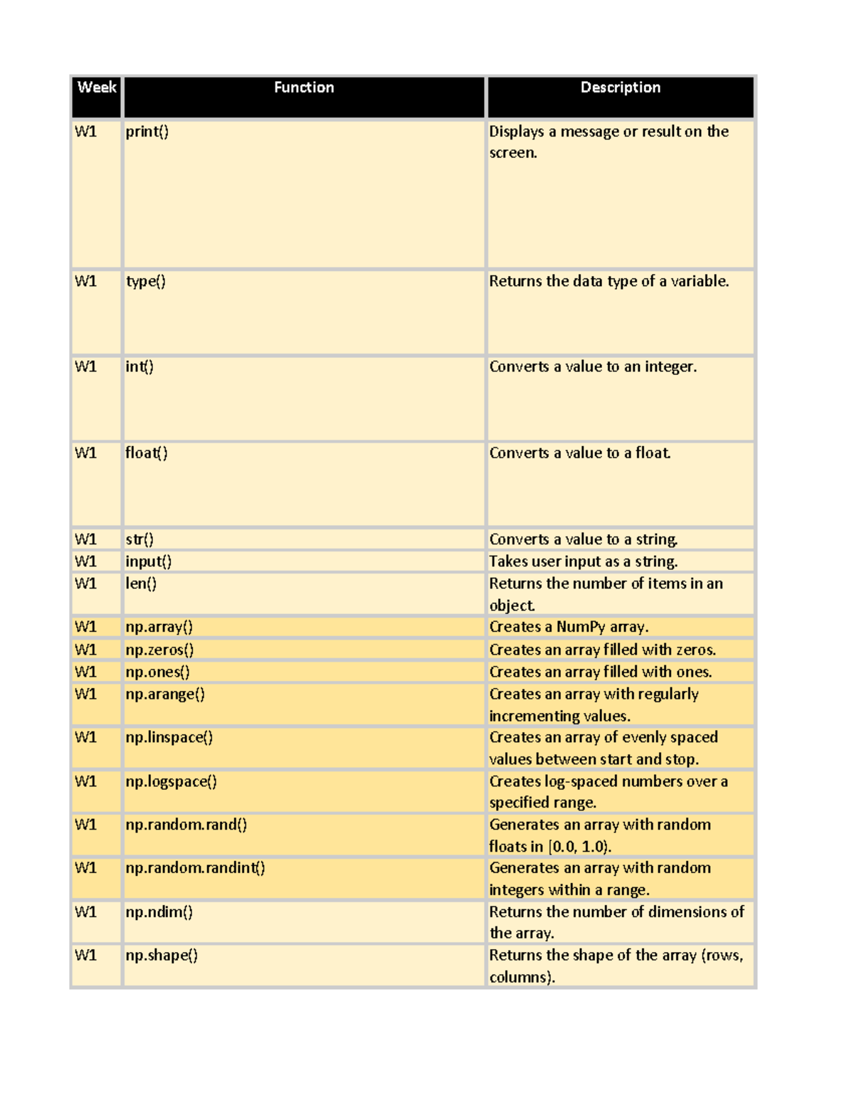 Python Function List: Key Functions and Descriptions for ENG1014 - Studocu