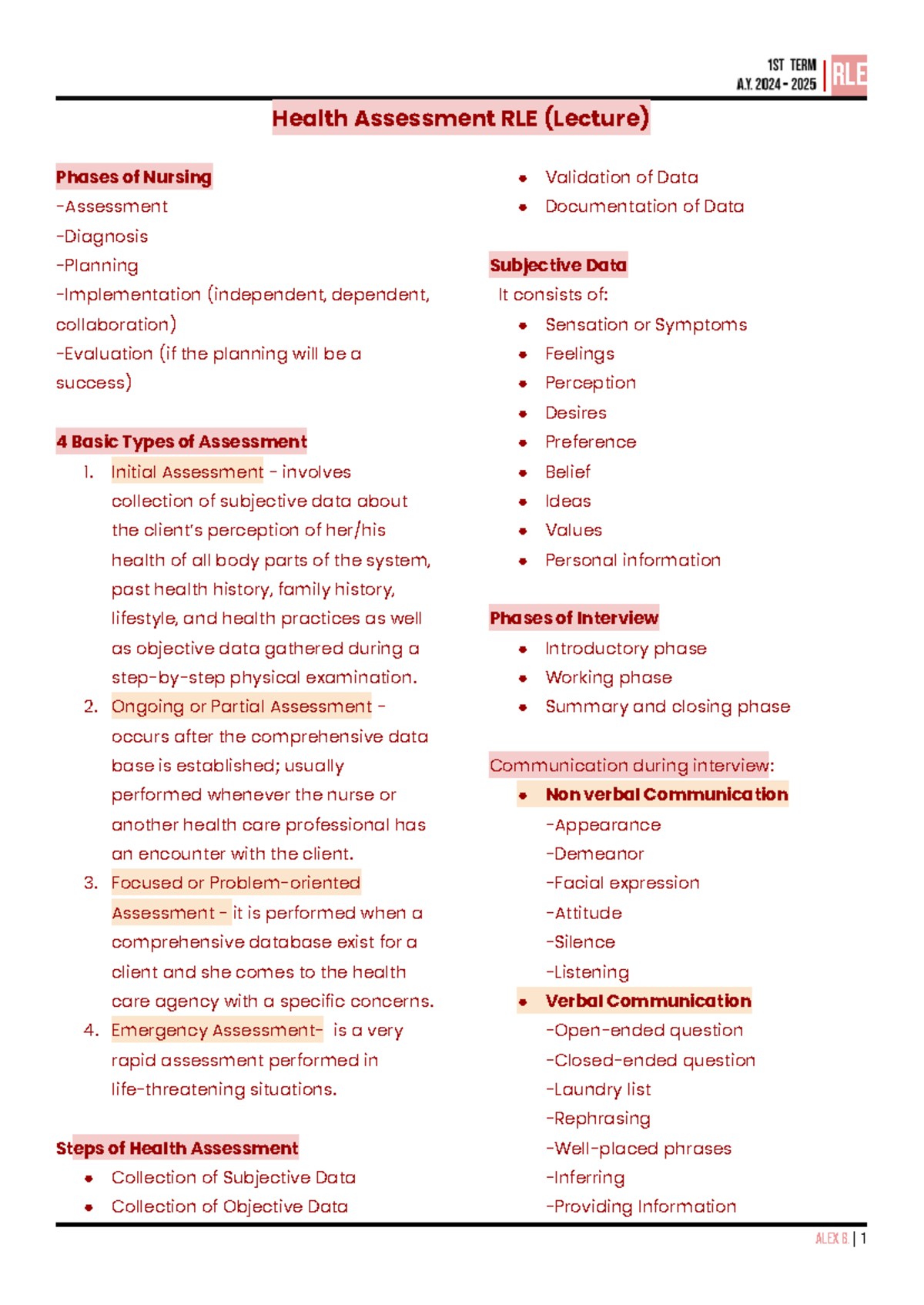 Health Assessment RLE (Lecture): Phases & Techniques of Data Collection ...