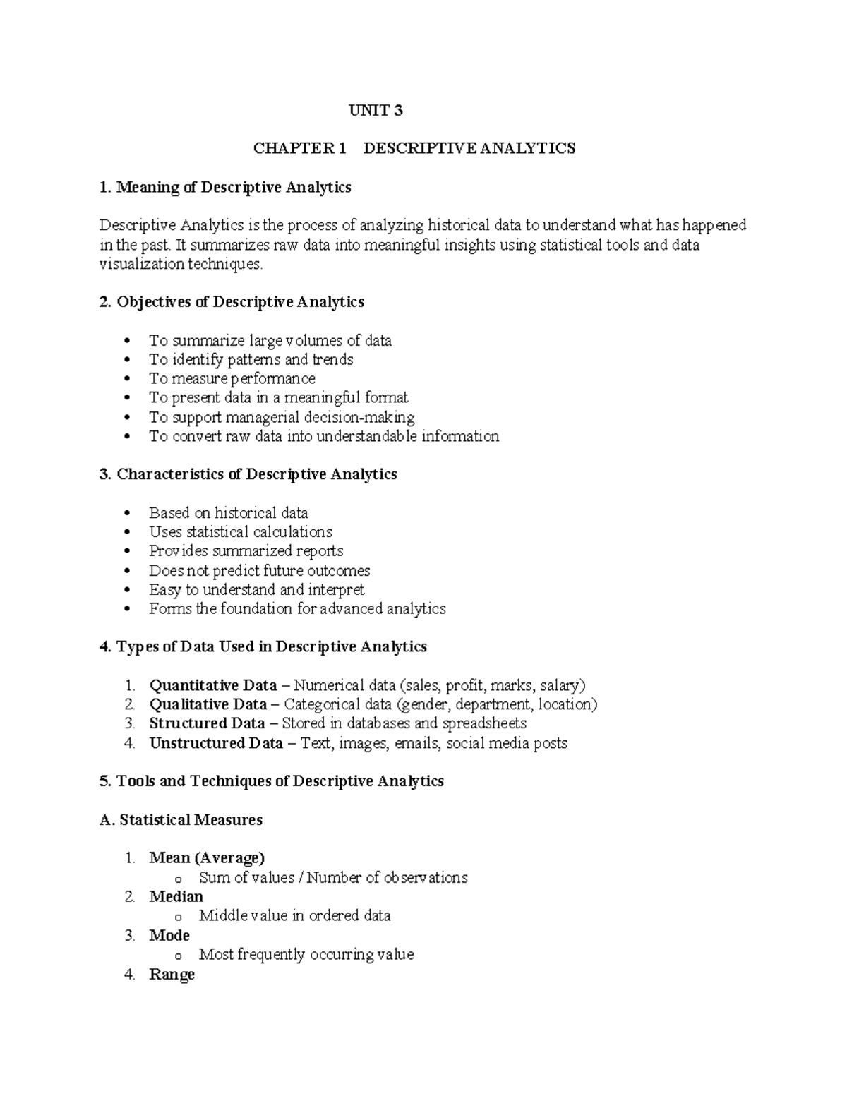 Unit 3 BA Descriptive Analytics: Understanding Historical Data Insights ...