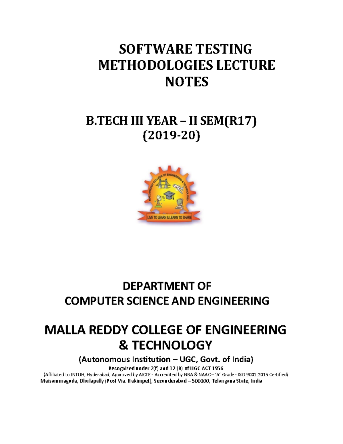 SOFTWARE TESTING METHODOLOGIES LECTURE NOTES B.TECH II SEM (R17) - Studocu