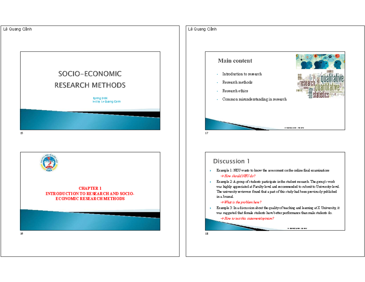 Ch1: Introduction to Research Methods - LE QUANG CANH - Studocu