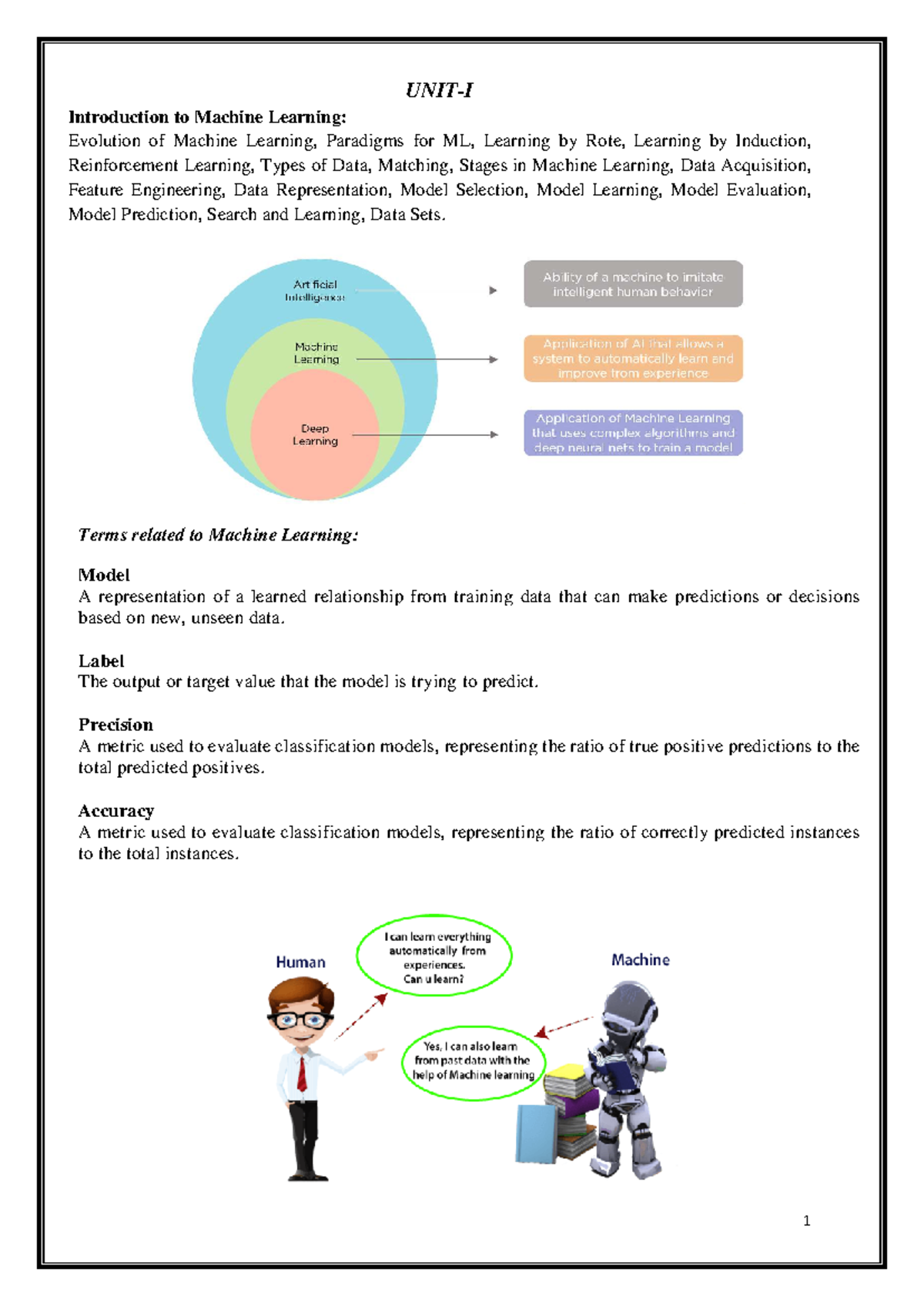 UNIT-1 ML AI&ML R23: Comprehensive Overview of Machine Learning ...