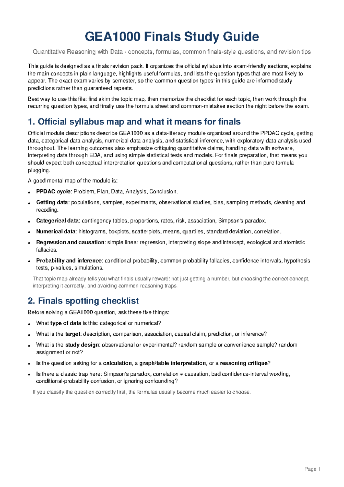 GEA1000 Finals Study Guide: Quantitative Reasoning & Data Analysis ...