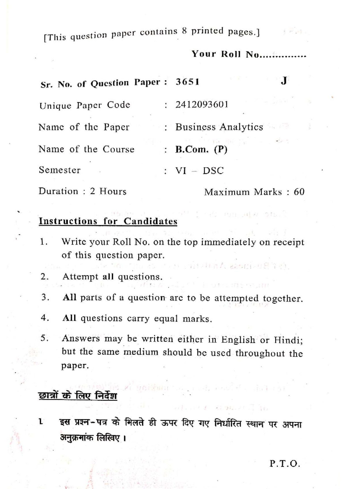 Business Analytics VI Exam Paper - B.Com. (P) Semester VI - Studocu