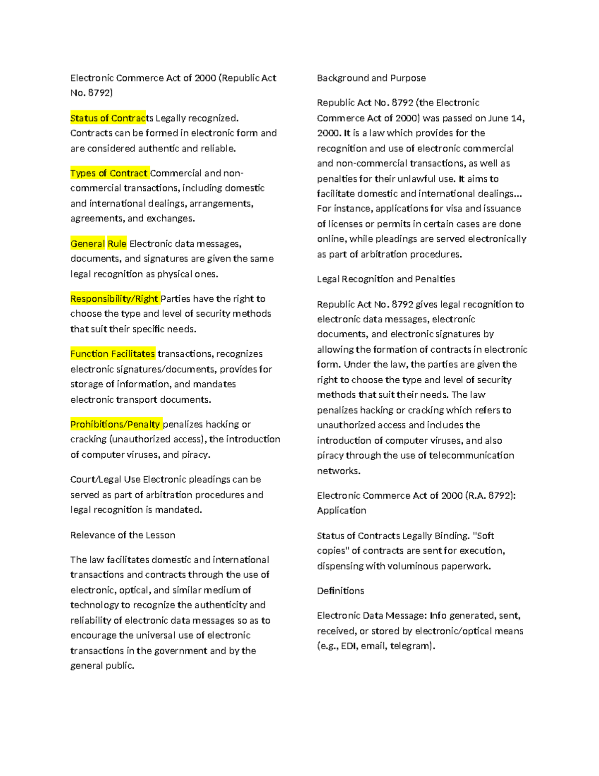 Electronic Commerce Act (R.A. 8792): Legal Status of Electronic ...