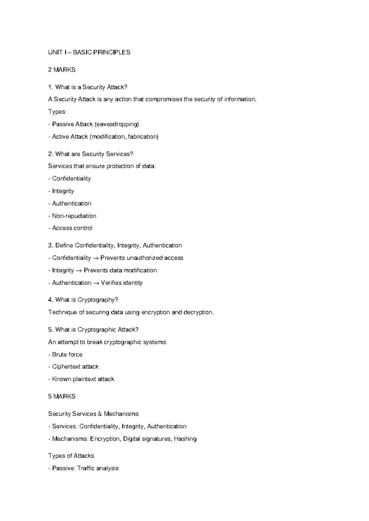 CNS 101: Unit I & II Security Principles and Cryptography Overview ...