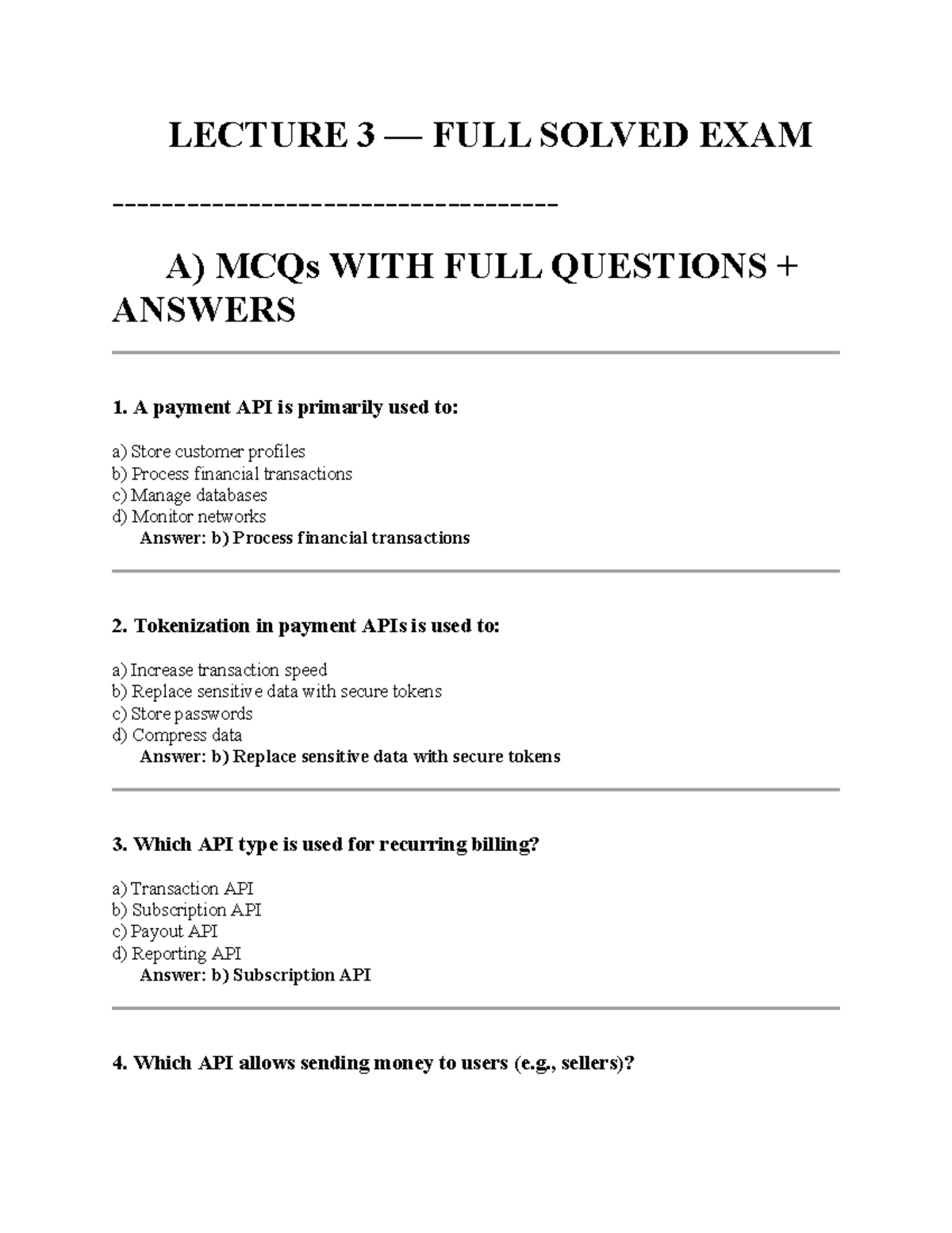LECTURE 3 — FULL SOLVED EXAM ON PAYMENT APIS AND WORKFLOWS - Studocu