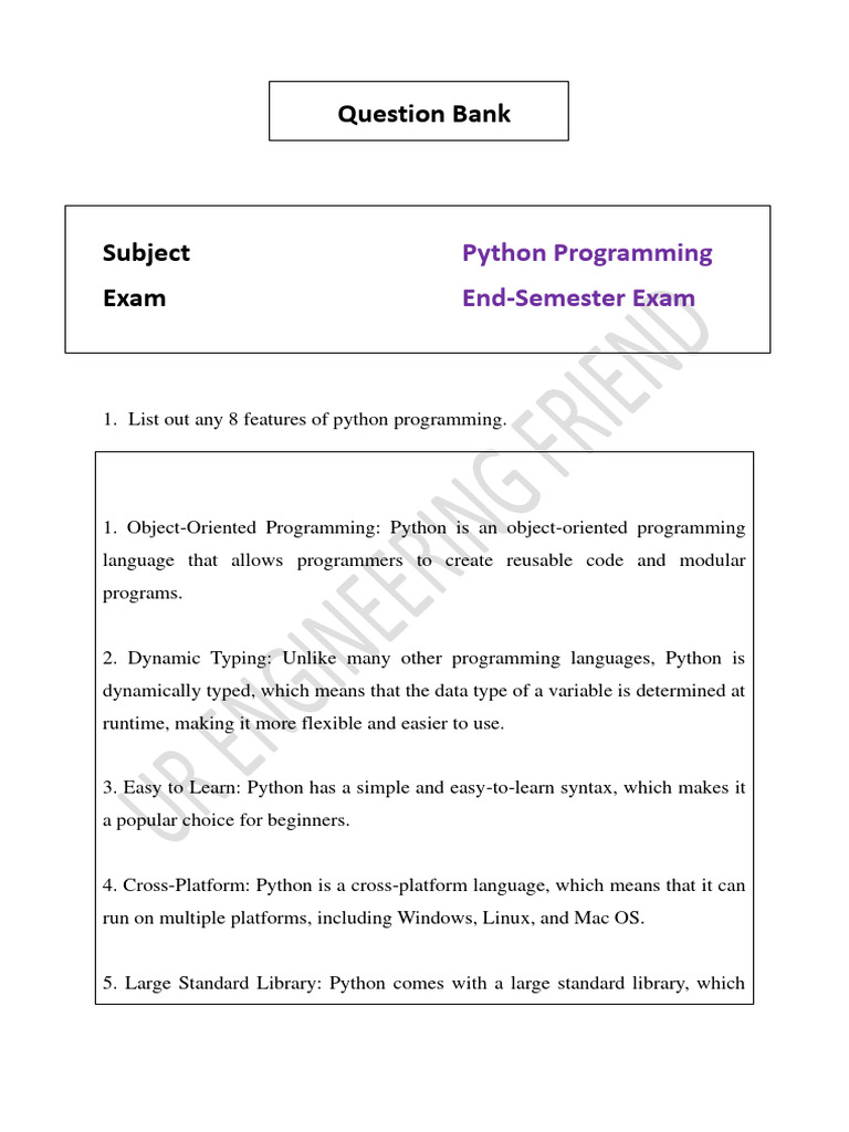 Based on this image's title: “Python Question Bank With Answers - End Semester (By Ur Engineering ...”