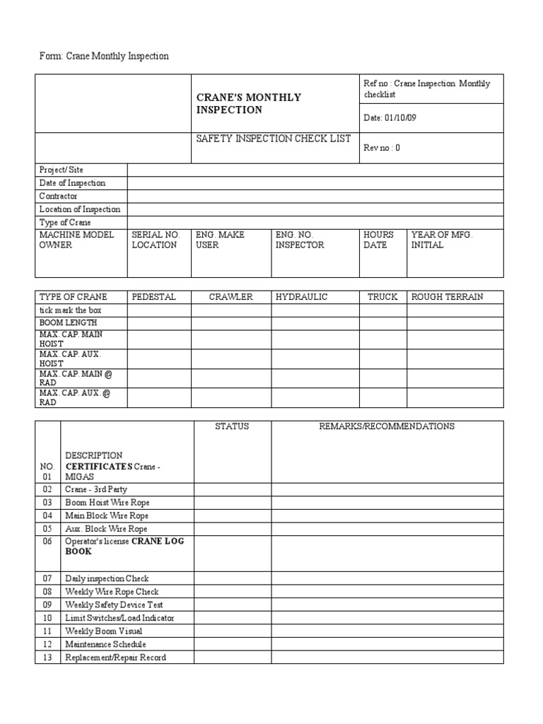 Monthly Crane Inspection Checklist Crane Inspection Services