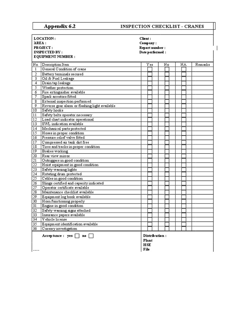 Printable Crane Inspection Checklist