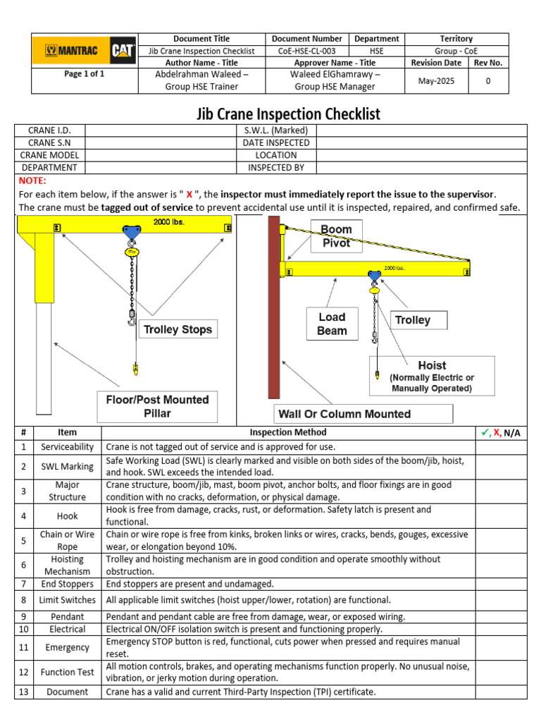 Jib Crane Inspection Checklist Guide | PDF | Crane (Machine ...