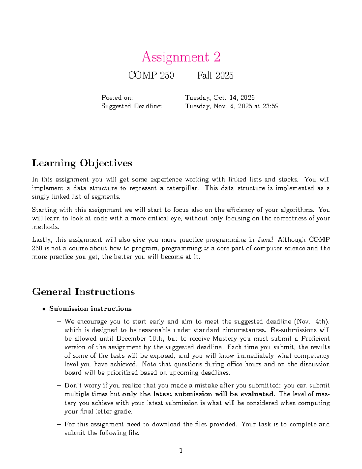 COMP 250 Fall 2025 Assignment 2: Caterpillar Data Structure ...