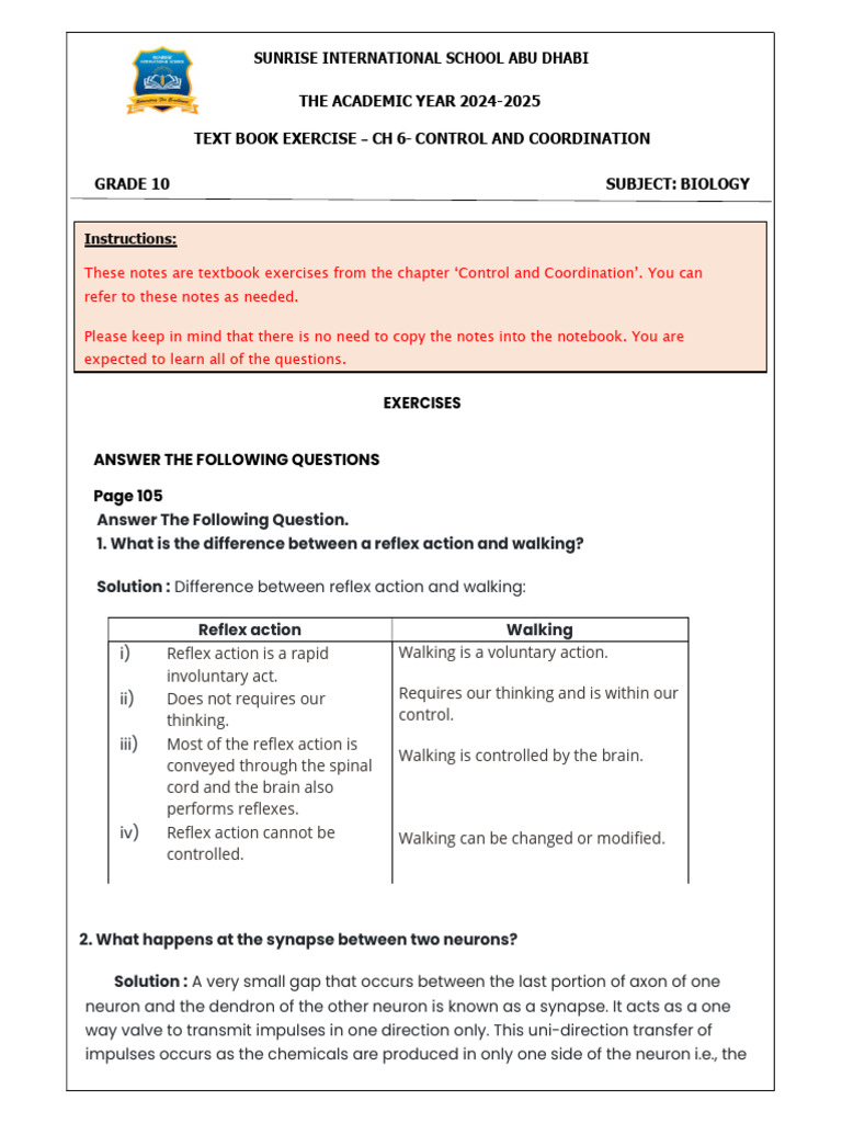 Class 10 Chapter 6-Control and Coordination Solution - kamboz sir