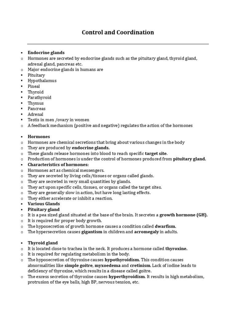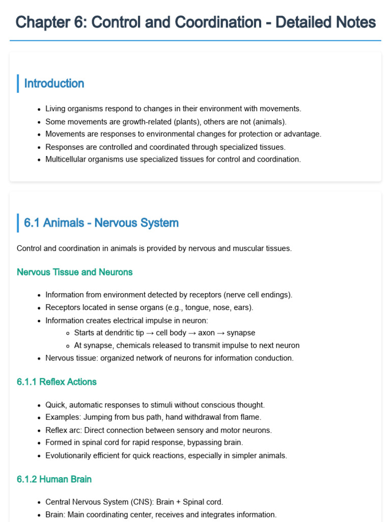 Chapter 6_ Control and Coordination Notes | PDF | Nervous System | Hormone