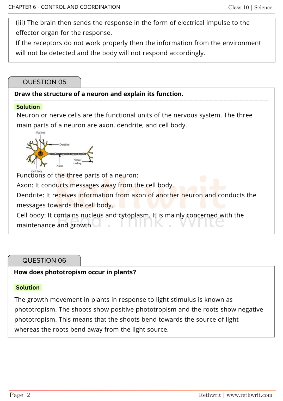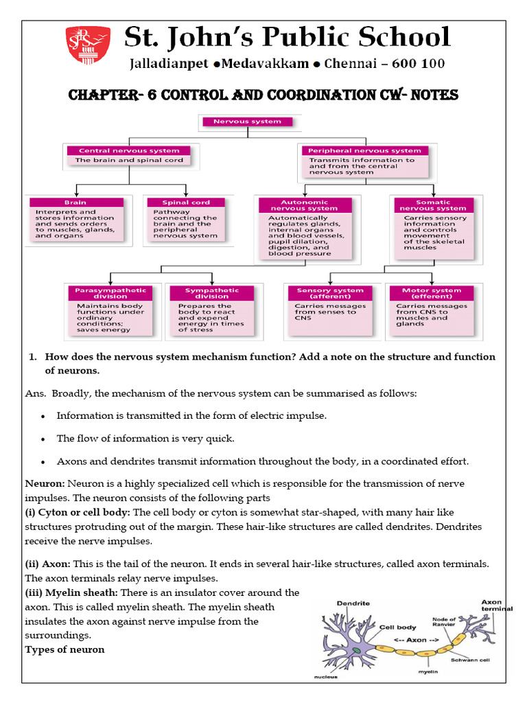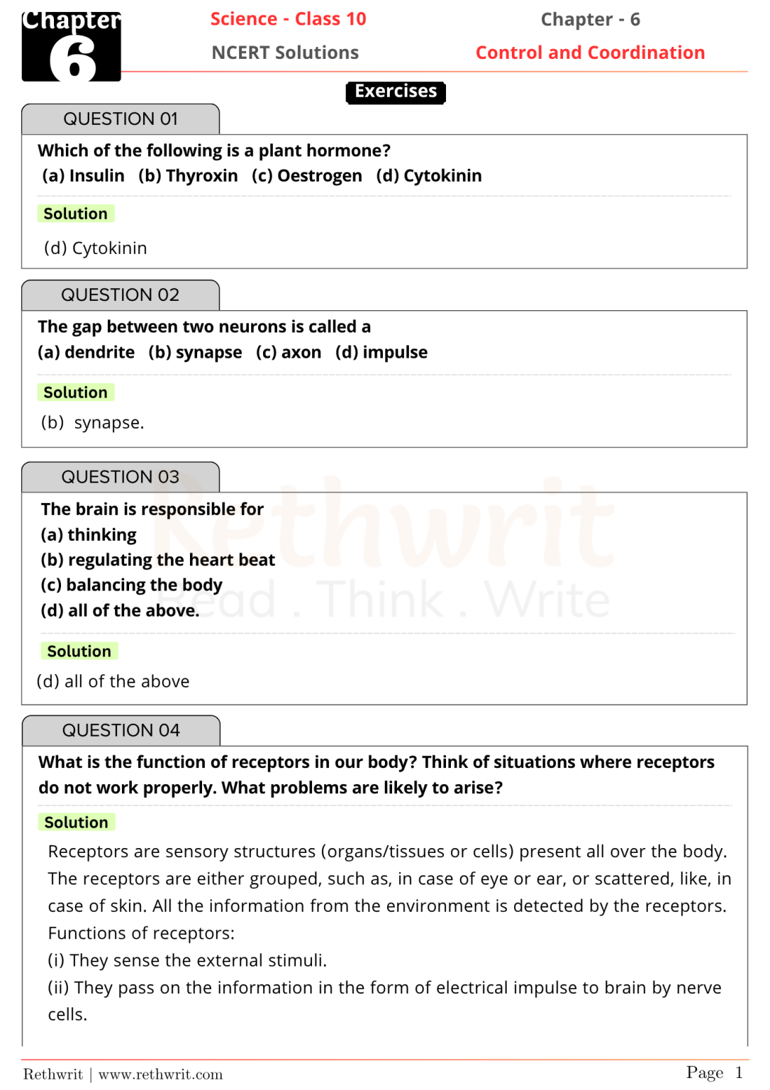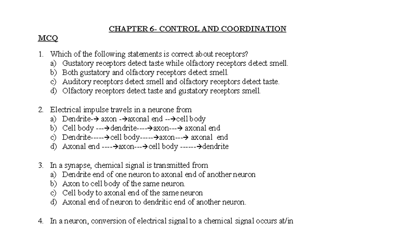 CHAPTER 6: CONTROL AND COORDINATION MCQ & LONG ANSWER QUESTIONS - Studocu