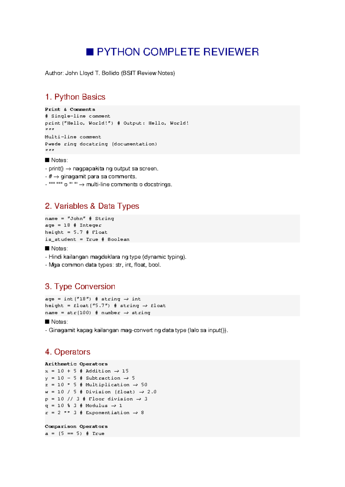 PYTHON 101: COMPLETE REVIEWER NOTES (BSIT) - Studocu