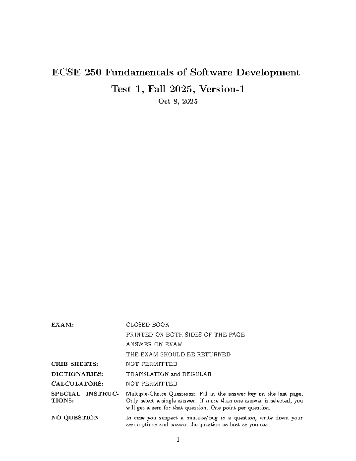 ECSE 250 Fundamentals of Software Development Test 1 Review, Fall 2025 ...