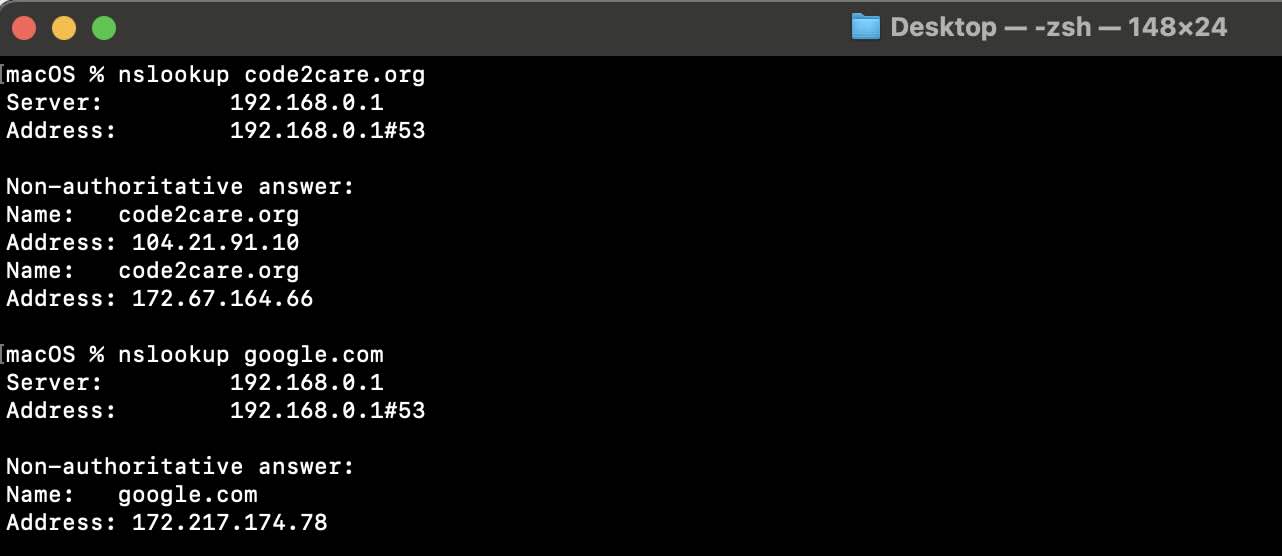 Check DNS Lookup using Mac Terminal | Code2care