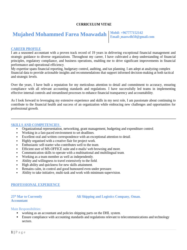 Mujahed Mohammed Farea Moawadah cv | PDF | Regulatory Compliance | Audit