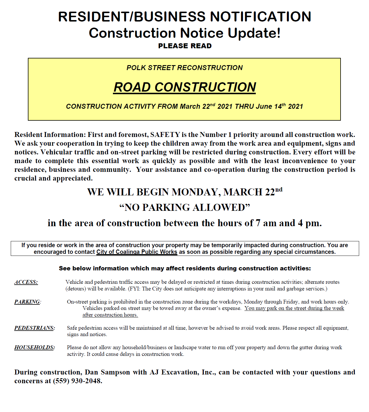 Street Rehabilitation Begins Next Week – Coalinga Press