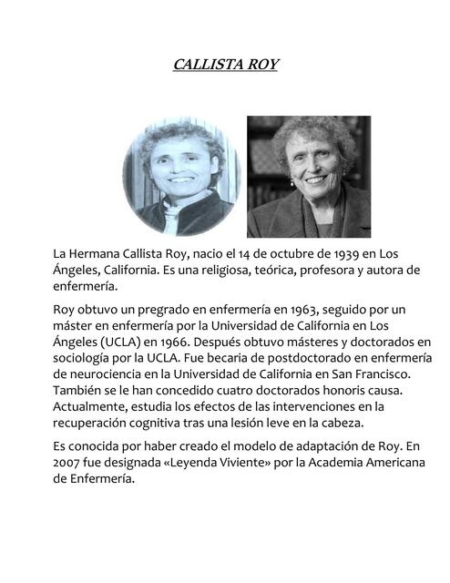 Roy Adaptation Model: Infografía sobre Sor Callista Roy - Studocu