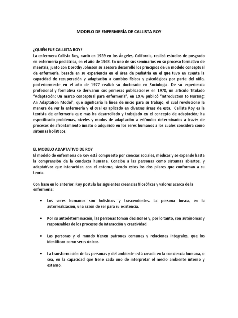 Modelo de Adaptacion de Callista Roy | PDF | Enfermería | Adaptación