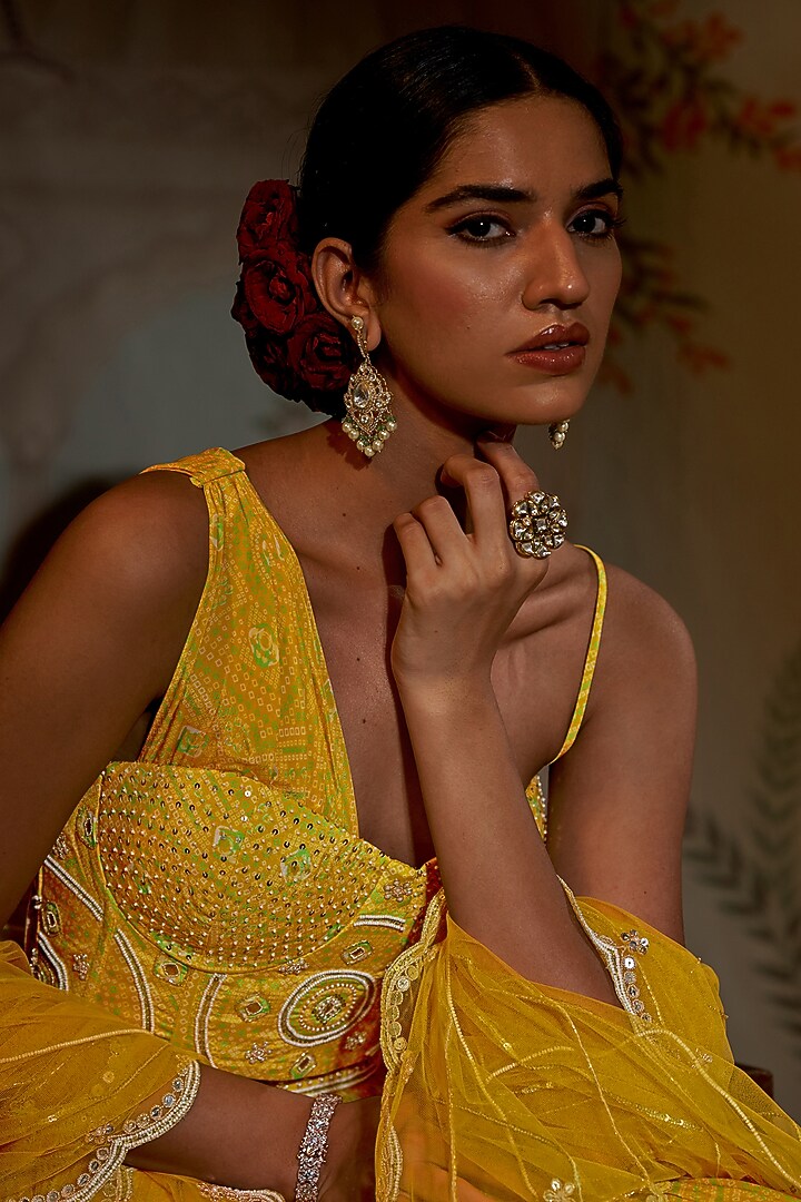 Yellow Crepe Silk Hand Embroidered Wedding Lehenga Set by Aayushi ...