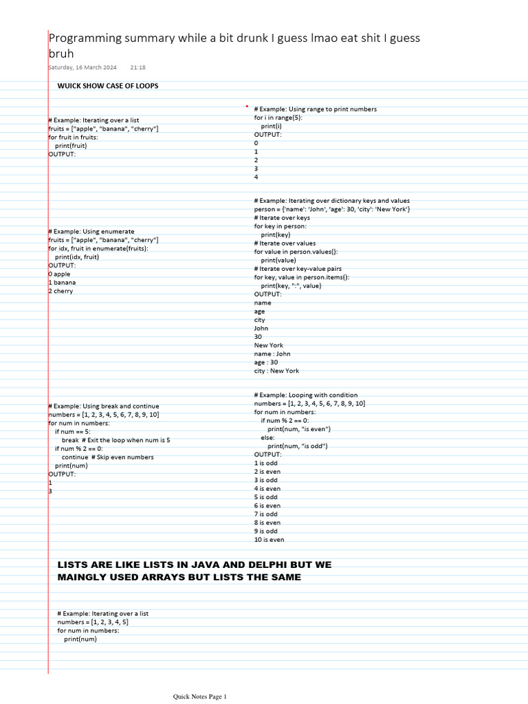 Programming summary of while and for loops python | PDF | Computer ...